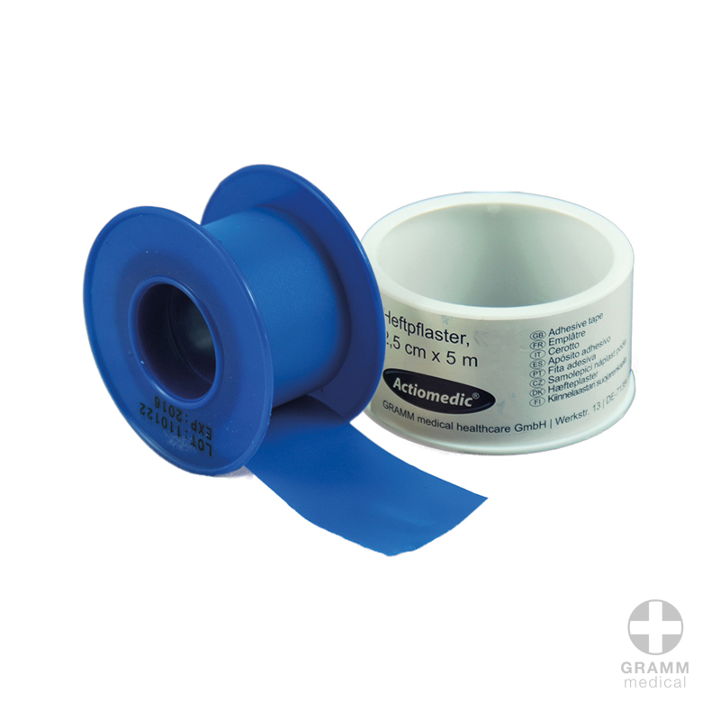 Actiomedic® Adhesive Tape PE, blue , 2,5 cm x 5 m on a spool with predective ring