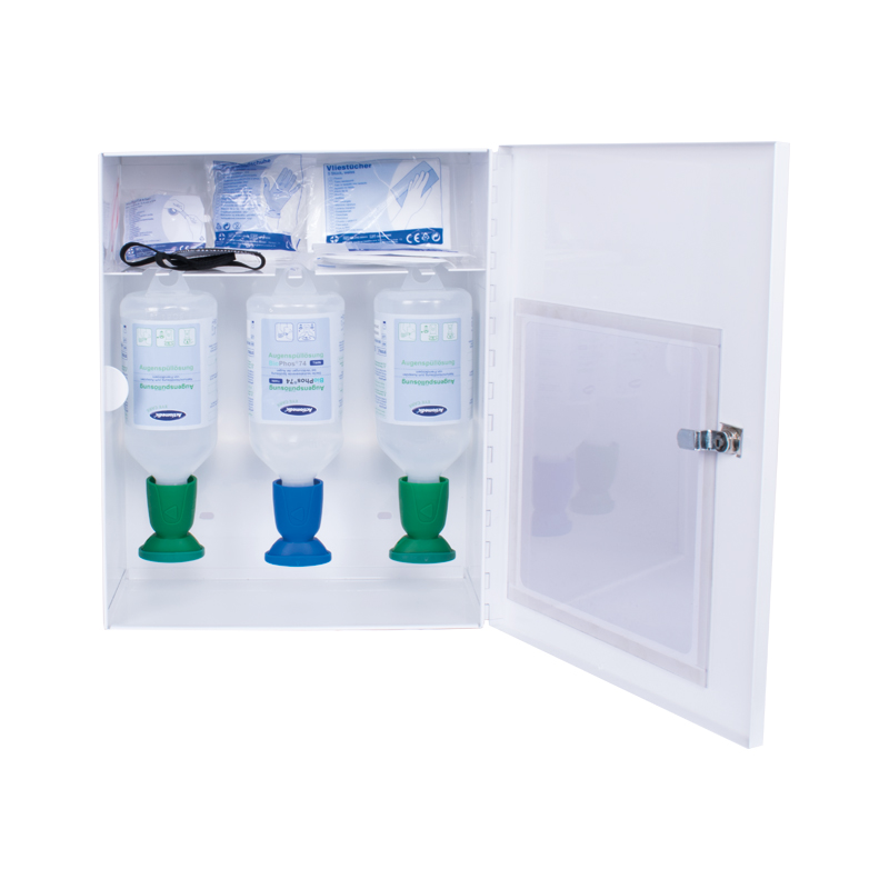Actiomedic® EYE CARE Eye-wash metal cabinet II with additional equipment