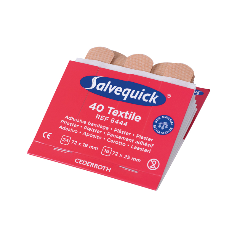 Content: 40 Plasterstrips waterproof (6444): 24 Strips à 19 x 72 mm , 16 Strips à 25 x 72 mm