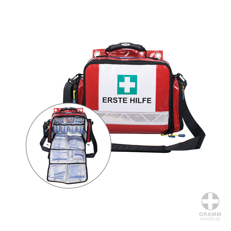 - hochwertig verarbeitete Erste-Hilfe-Tasche aus strapazierfähigem Planematerial
